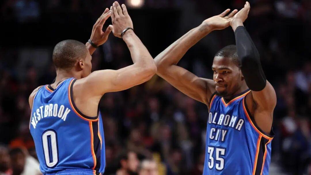 2016年夏天,在俄城雷霆搭档八年的凯文·杜兰特与威斯布鲁克分手。