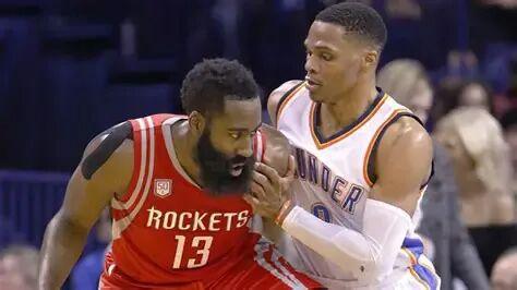 休斯顿火箭的詹姆斯·哈登,俄城雷霆的拉塞尔·威斯布鲁克。这一年,他们将以历史记录当做彼此竞逐的背景墙。